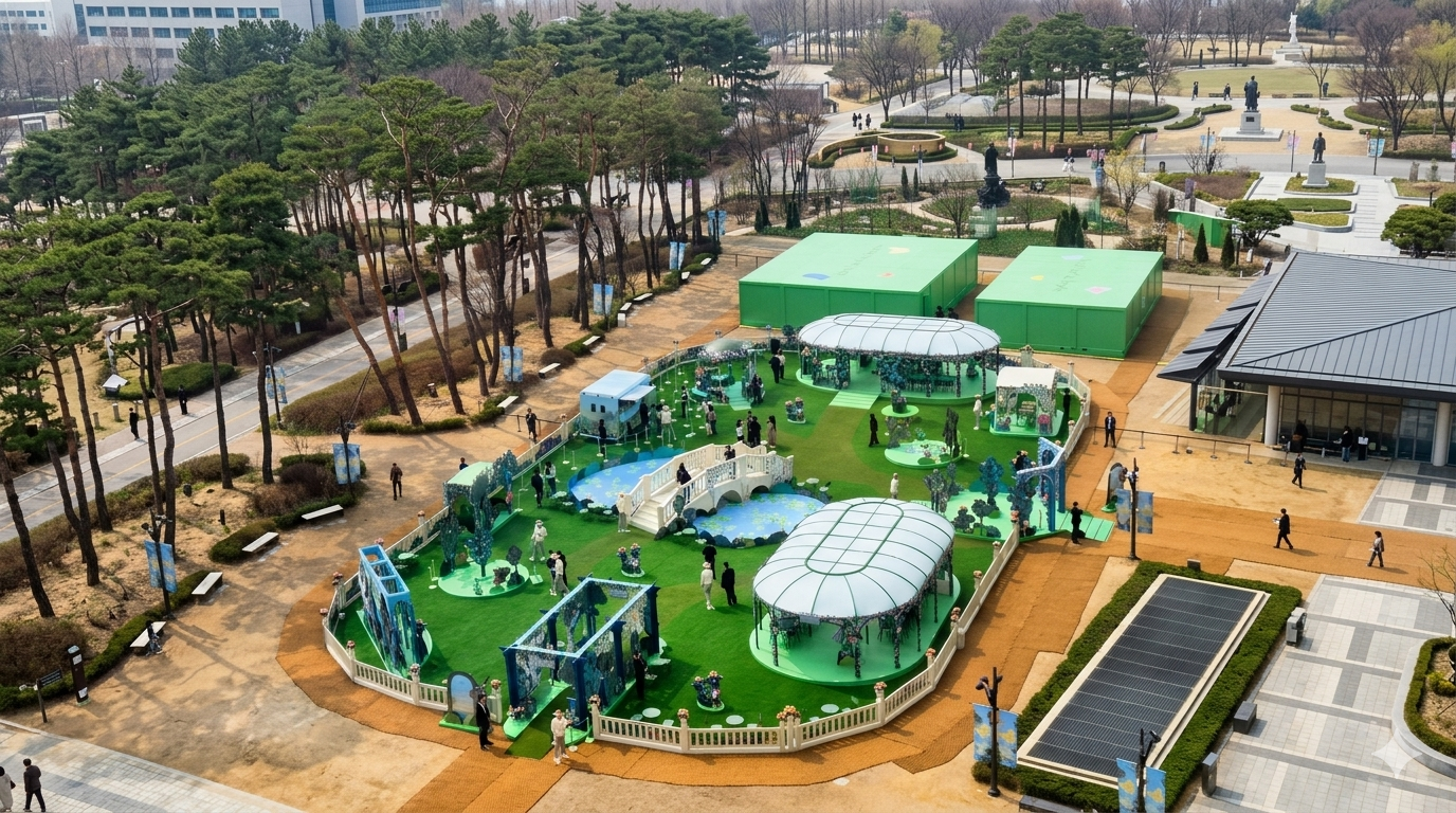 2026년 봄, 잠실 월드파크 잔디광장을 수놓은 반클리프 앤 아펠의 '스프링 이즈 블루밍' 팝업 현장은 프랑스 아티스트 샬롯 가스토의 화려한 일러스트가 돋보이는 프로젝트였습니다.