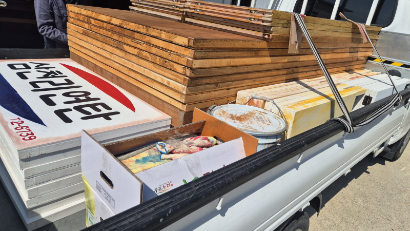 현장 맞춤형 제작: 이벤트 성격에 맞춰 사이즈 및 문구 변경이 가능하며, 대량 물량도 신속하고 정확하게 대응합니다. (최근 대형 트럭 출고 완료!)