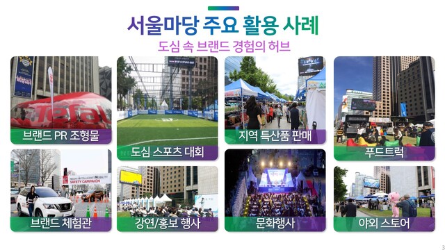 - 팝업스토어 및 각종 야외행사 개최 가능(커피차, 브랜드 홍보행사, 판매장터 등 개최이력 多)