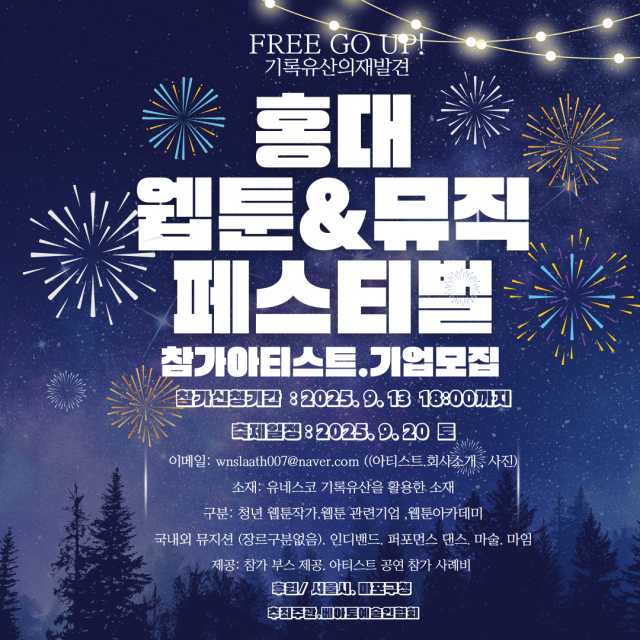 홍대 전시&콘서트 페스티발에 웹툰작가분들을 모십니다.