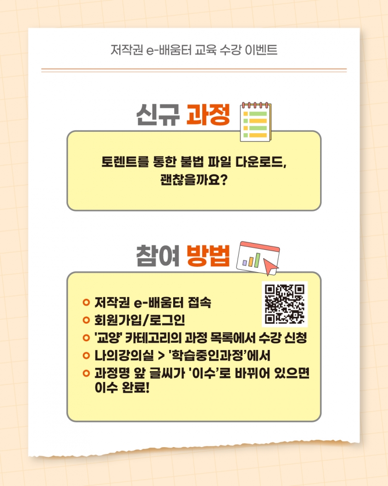 [한국저작권위원회] 저작권 e-배움터 교육 수강 이벤트(토렌트를 통한 불법 파일 다운로드, 괜찮을까요?)
