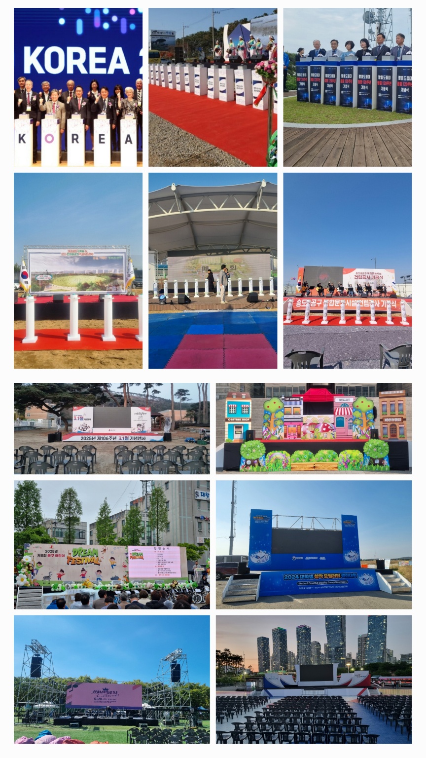 무대 조명 특수효과 전기간선작업 발전차 설치 및 운용 임대까지 한번에 하고 있습니다