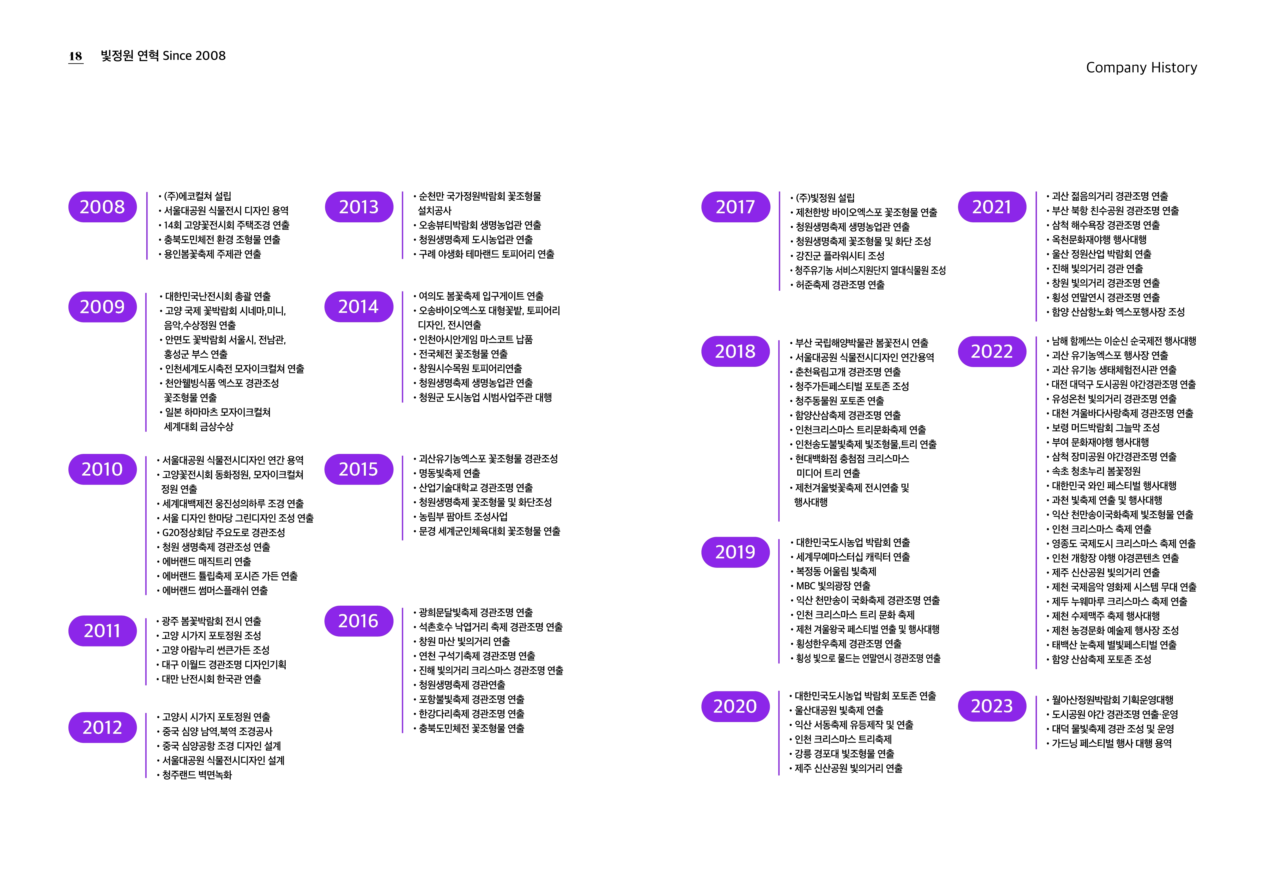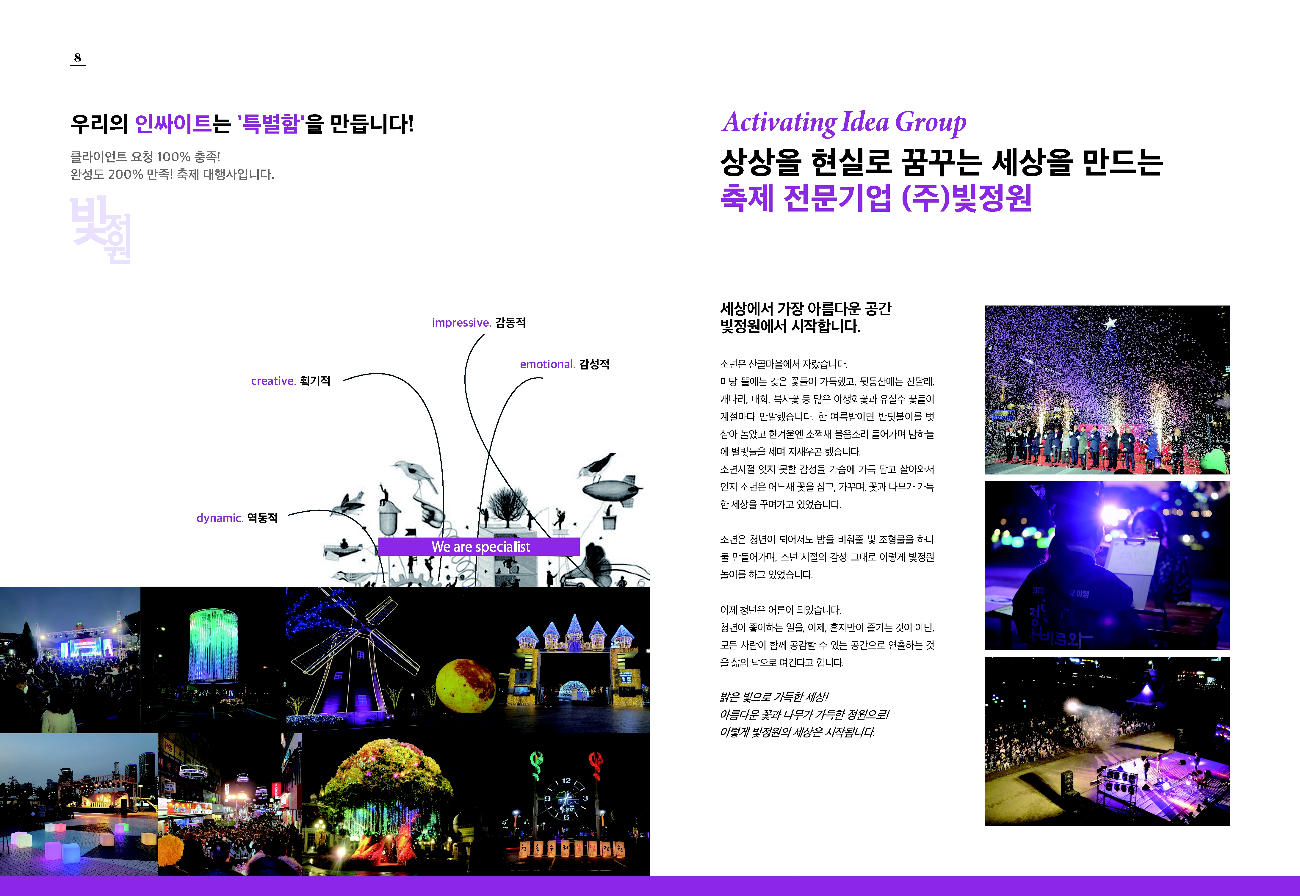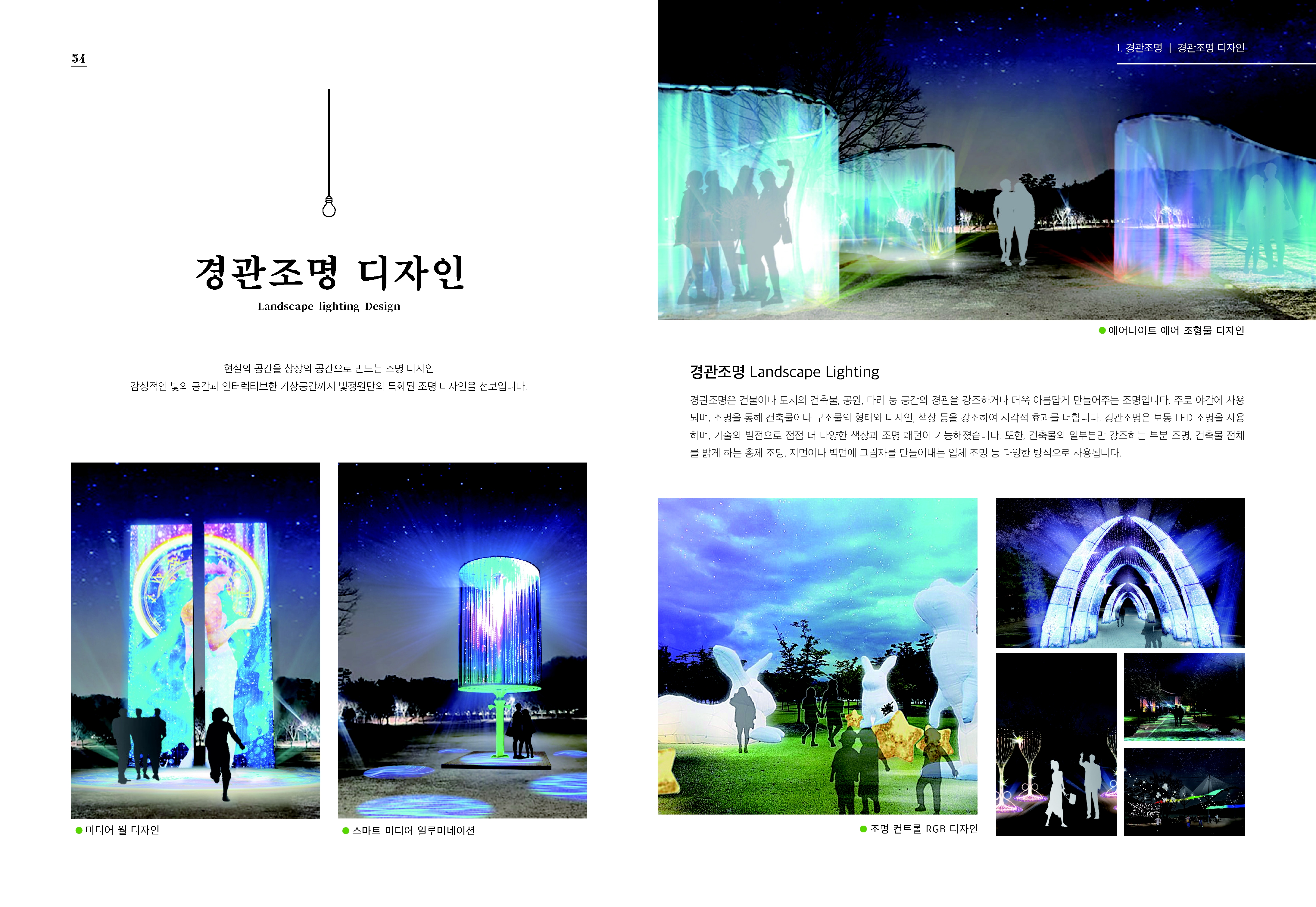 경관조명, 미디어아트, 경관조성, 기획전시조경 전문가 그룹입니다.