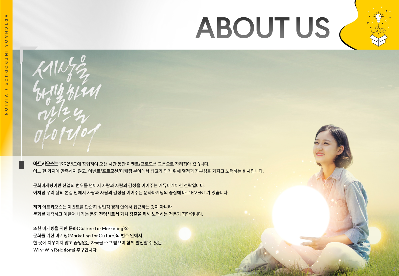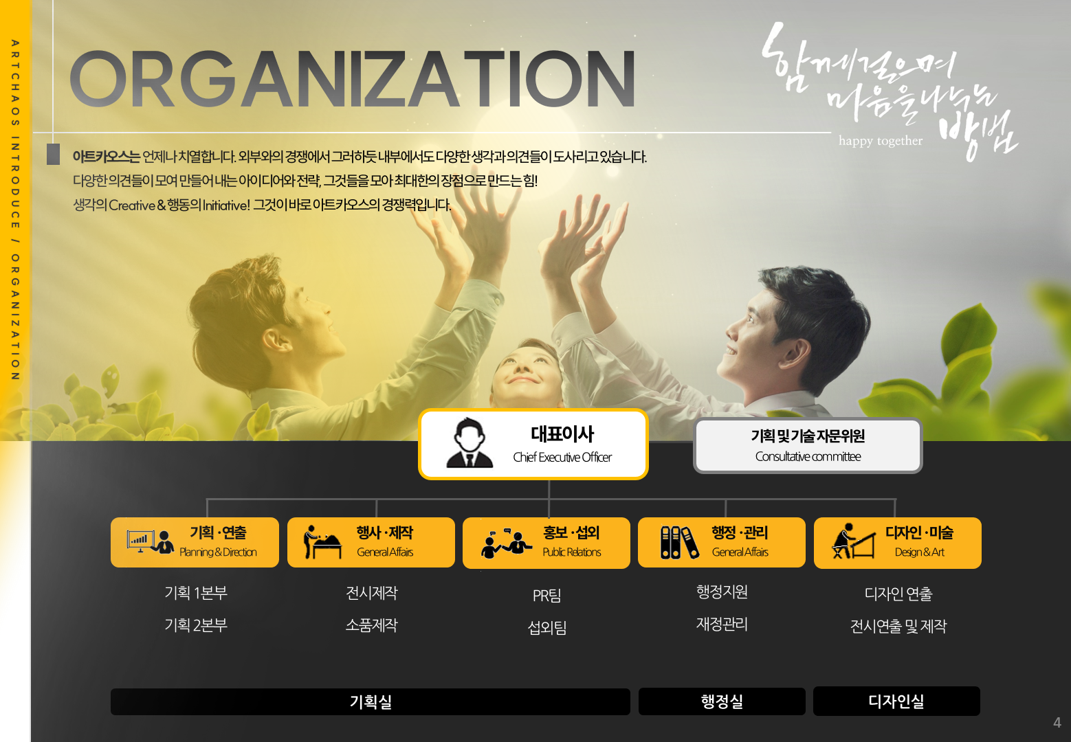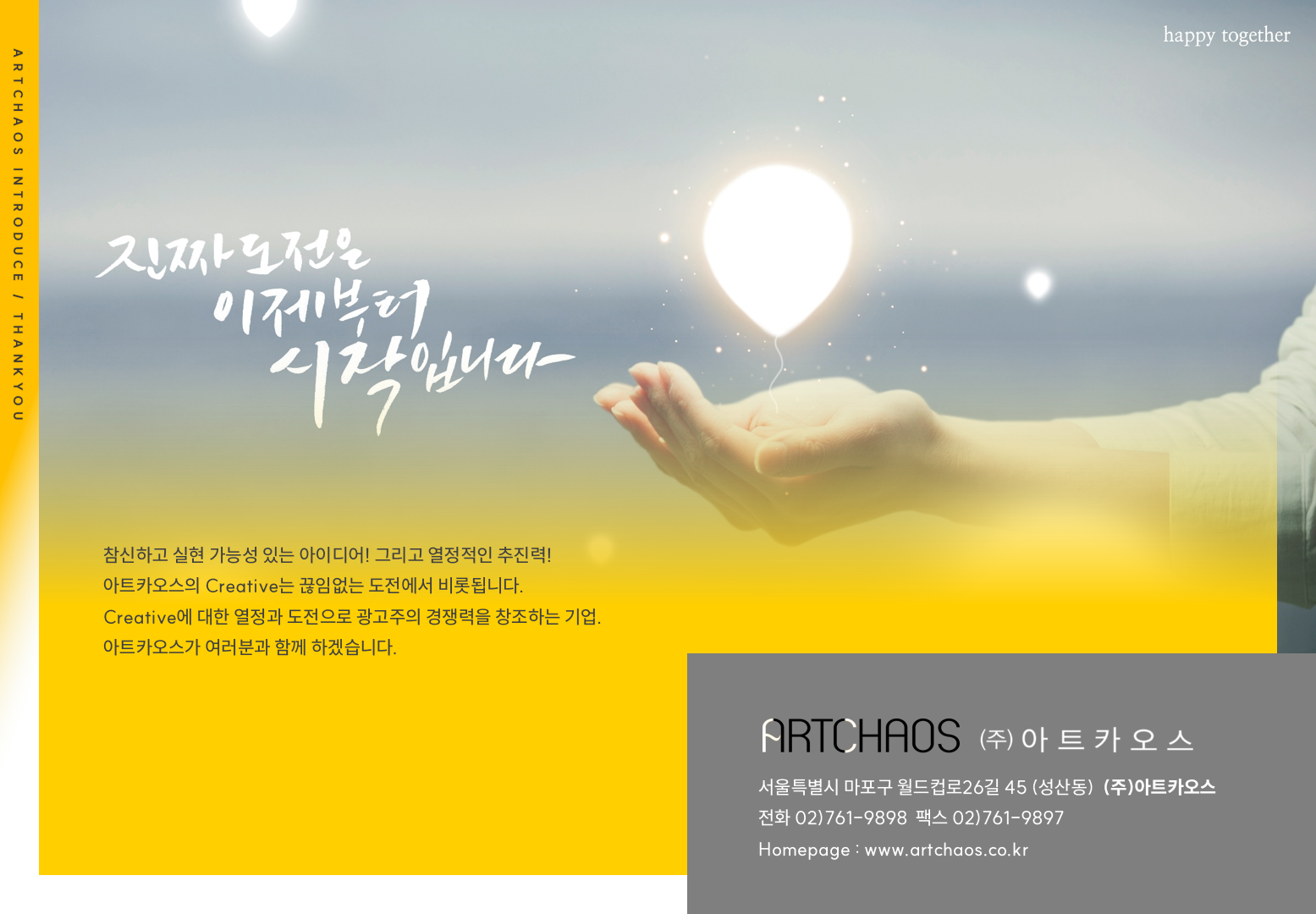 예술과 혼돈이 만나 새로운 질서를 창조한다! 질서와 신뢰의 가치로 도약하는 회사, 아트카오스!