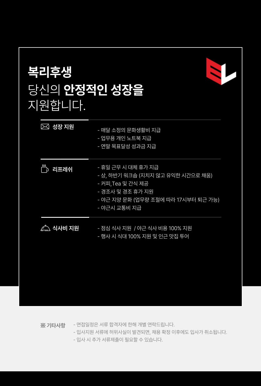 고용 형태 | 정규직(신입의 경우 수습 3개월) |