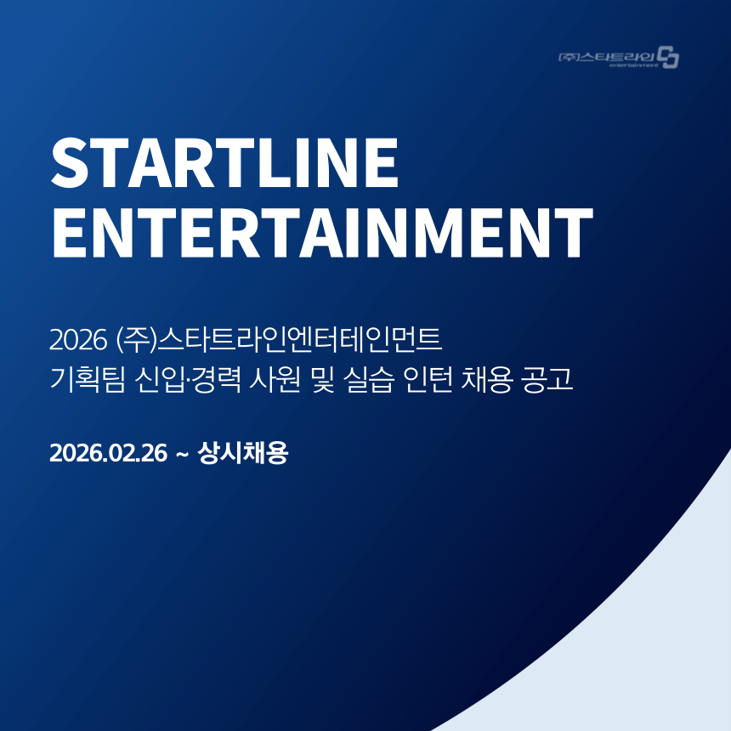 2026년 (주)스타트라인엔터테인먼트 신입/경력 채용 공고