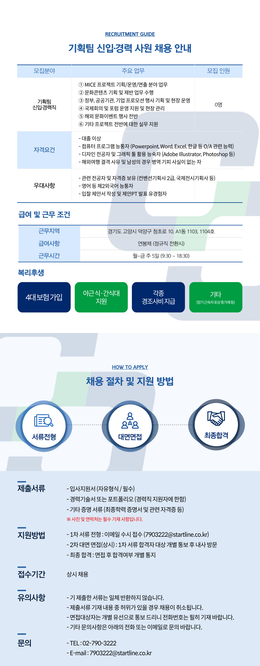 (주)스타트라인엔터테인먼트에서 새로운 인재를 모집합니다.