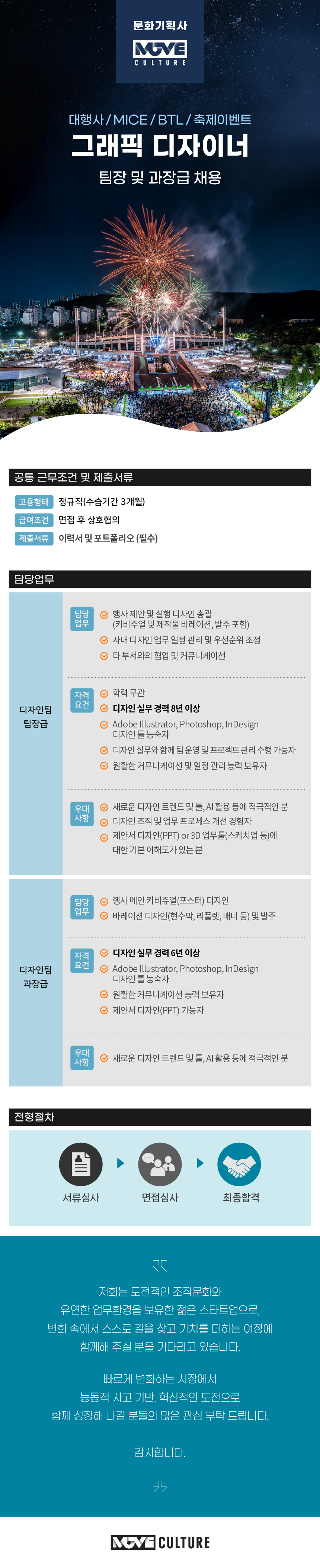 [대행사/MICE/BTL/축제] 그래픽 디자이너 팀장 및 과장급 채용
