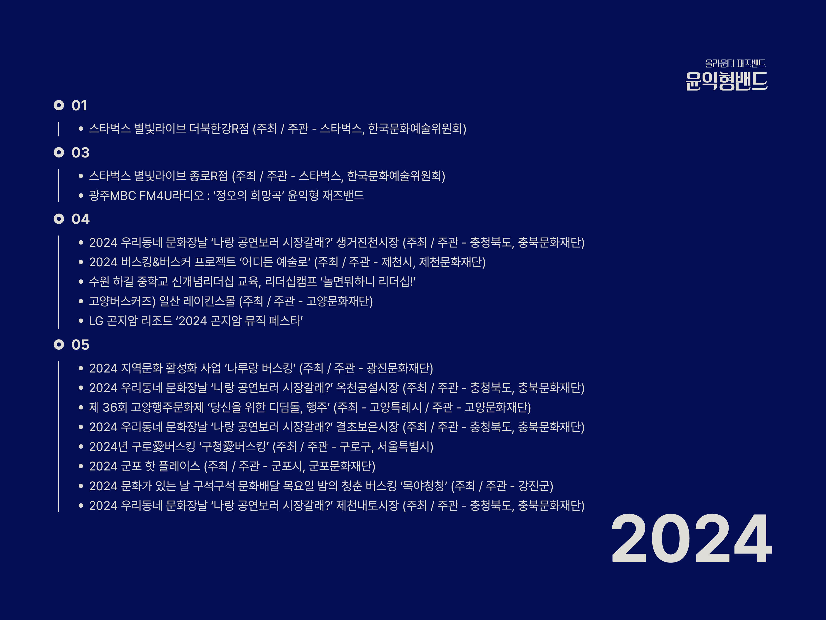 공연 실황은 유튜브 및 인스타 윤익형 밴드로 검색하시면 더 자세히 보실수 있습니다