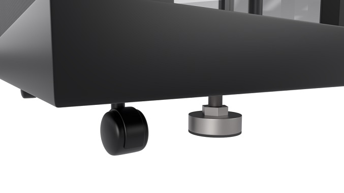 바퀴에는 고정 장치가 있어 안전하게 고정할 수 있어 안정적인 방송 환경을 제공합니다.