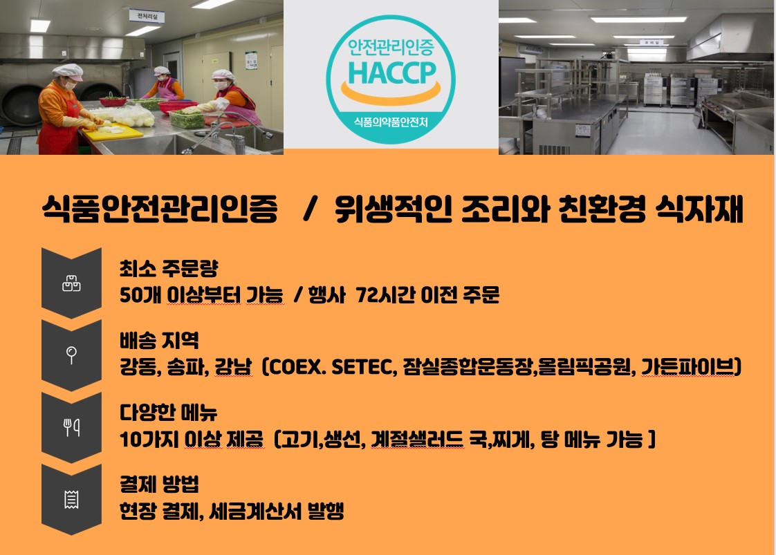 HACCP인증공장에서 직배송하는 행사스텝용 친환경 도시락 배달