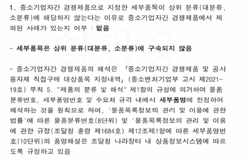 중소기업자간 경쟁제품 제도를 위반한 입찰은 무효라는 판결, ‘기타 행사용역’
