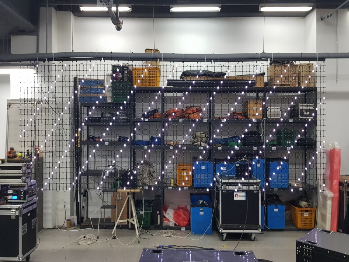 오는 10월에 개최하는 ‘서울세계불꽃축제’에서 여의도 63빌딩에서 가로 40m, 세로 21m로 설치 예정인 매쉬 75mm. 크기는 무한확장이 가능하다.