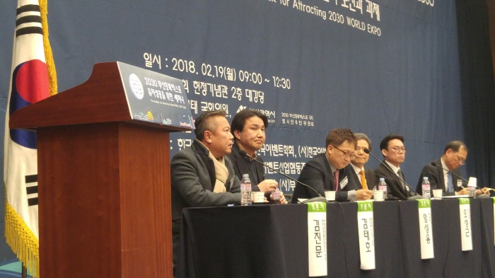 전문가 토론에서는 김이태 부산대학교 교수가 좌장을 맡고, 김진문 이노션월드와이드 국장, 김태호 SM C&C 팀장, 오성근 2030엑스포유치 범시민추진위원회 집행위원장, 엄상용 이벤트산업협동조합 이사장, 하홍국 ()한국MICE협회 사무총장, 황희곤 한림국제대학원대학교 교수 등 엑스포전문가 패널이 참석해 부산엑스포의 도전과 과제라는 논제로 토론회를 가졌다.