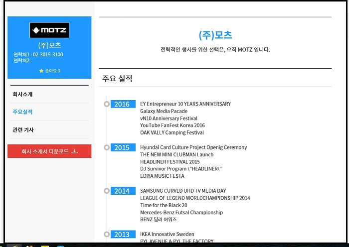 그리고 마지막으로 그 동안 언론에 소개된 모츠의 기사를 볼 수 있다.