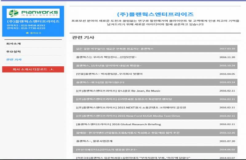(플랜웍스는 그 동안 자사의 보도자료를 일목요연하게 볼 수 있다)