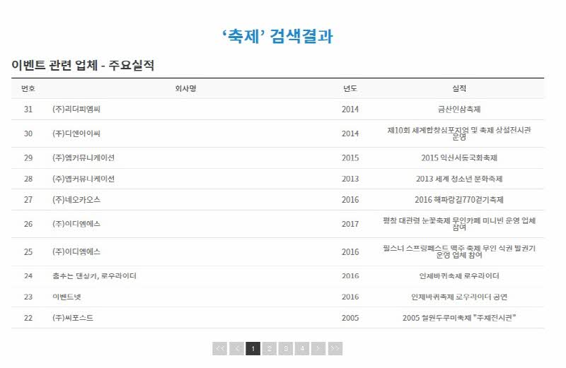 행사실적검색을 통해 해당회사를 찾아보세요.
