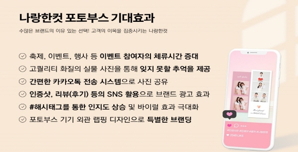 포토부스를 다루는 회사는 많이 있다. 그만큼 인기가 있으니 경쟁에 뛰어든 회사가 많다는 반증이다. 그 중에서도 유명한 곳이 바로 나랑한컷.