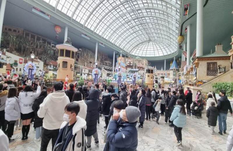 롯데월드에서 방역지침을 지킨다고는 하지만 인산인해이고 실내의 공간에 많은 인파가 몰려 놀이기구를 타고 있다. 오늘은 토요일이라 청소년 학생들이 인산인해이다.