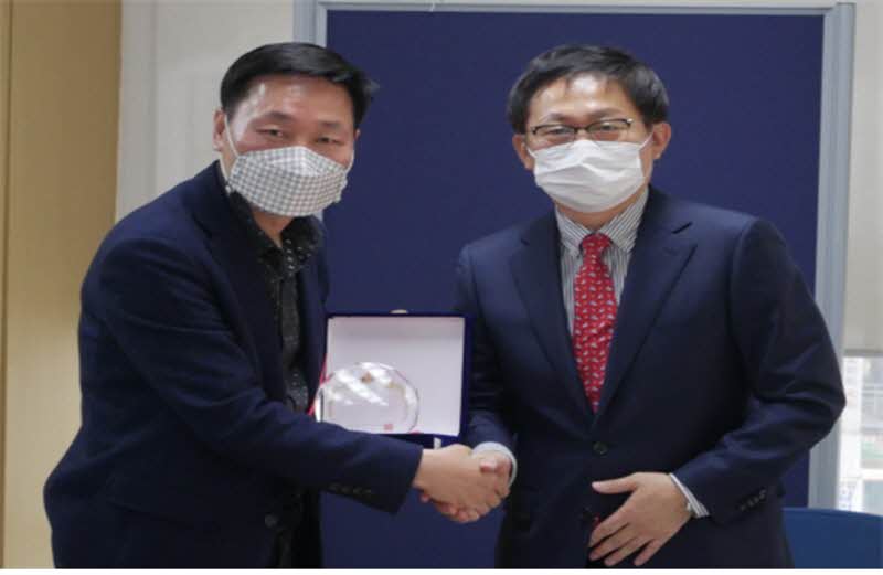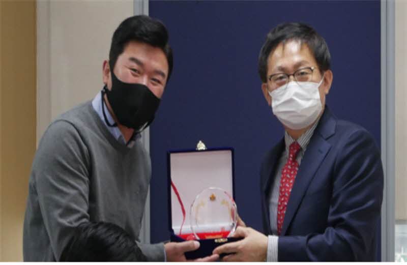 조형국전 회장(한국AV) , 김일수 부회장(캔조명) , 김인태 회장(시스템레이, 박준성 사무총장(프라임미디어), 조영민 총무(유티엘엔터로지스) 등 노고를 전하기 위해 협회원들의 뜻을 모아 조그마한 감사패 전달을 했다.