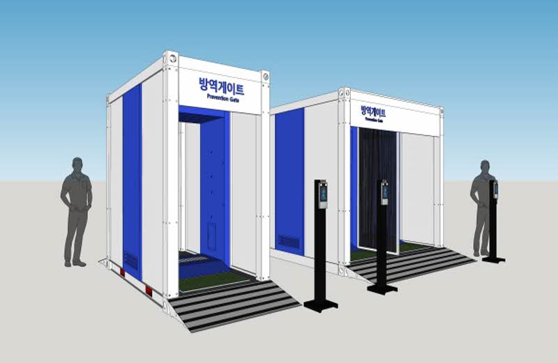 부스를 통과하면 소독액 분사 및 살균등이 동시에 이뤄지는 특장점이 있다. 한마디로 방역, 검사 등이 원스톱 서비스가 된다.