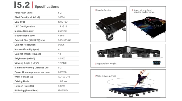 이젠 바닥에서 영상연출이 자유자재로 할 수 있다. 베이직테크(대표 윤영산)에서 개발, 렌털하는 바닥용 LED. 기존에는 LED위에 강화유리를 덮어 사용하기도 했으나 조명 등 반사로 인해 선명한 화질 송출이 어려워고 또한 수량이 적어 넓은 면적사용이 필요한 경우 대응이 되지 않은 단점이 있었다.