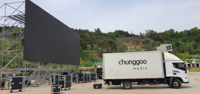 상암동 문화비축기지의 영화제에 영상이 설치되었다.