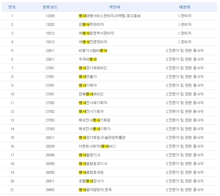 가끔 업계 관계자들이 이벤트업계의 문제점으로 지적하는 것 중 하나가 바로 이벤트는 산업분류가 없다, 직업분류가 없다는 겁니다. 어떤 분류를 지적하는지 모르겠습니다만,