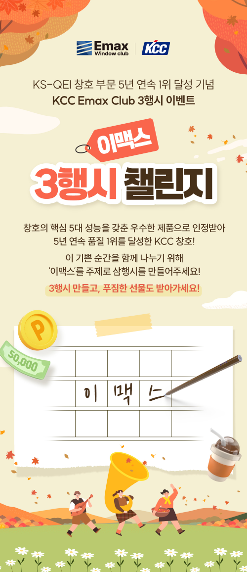 ✨KCC Emax Club 3행시 챌린지 ✨(신세계상품권 5만원권/네이버페이 1만원권/메가커피 기프티콘)