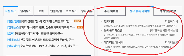 등록을 하면, 첫페이지 우측에 등록아이템으로 노출된다.