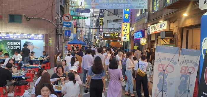 몰려드는 인파들로 인해 노상에 자리한 술자리가 대한민국인지 유럽에 와 있는 것인지 착각할만큼 이국적인 풍경이 인상적이다
