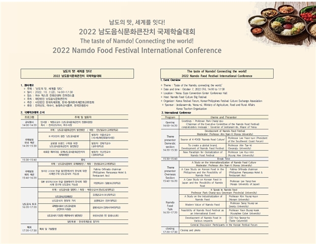 남도의 맛! 세계를 잇다! 2022 남도음식문화큰잔치 국제학술대회 |
