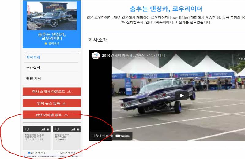 해당 회사소개 좌측에 보면 문자선택코너가 있고 전호번호만 입력하면 바로 SMS가